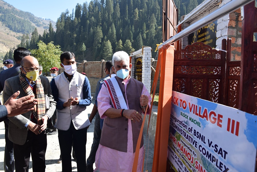 On the occasion, the Lt Governor inaugurated 33 KV Khumriyal-Machil Line costing Rs 471.80 lakhs which connects the area to the National Grid, BSNL V- Sat for internet, 24 bunkers/alternate secure shelters sheds, Panchayat Assets worth 80.65 lakh created in the last one year. Gram panchayat Action plan 2021-22 of Machil was also unveiled on the occasion.