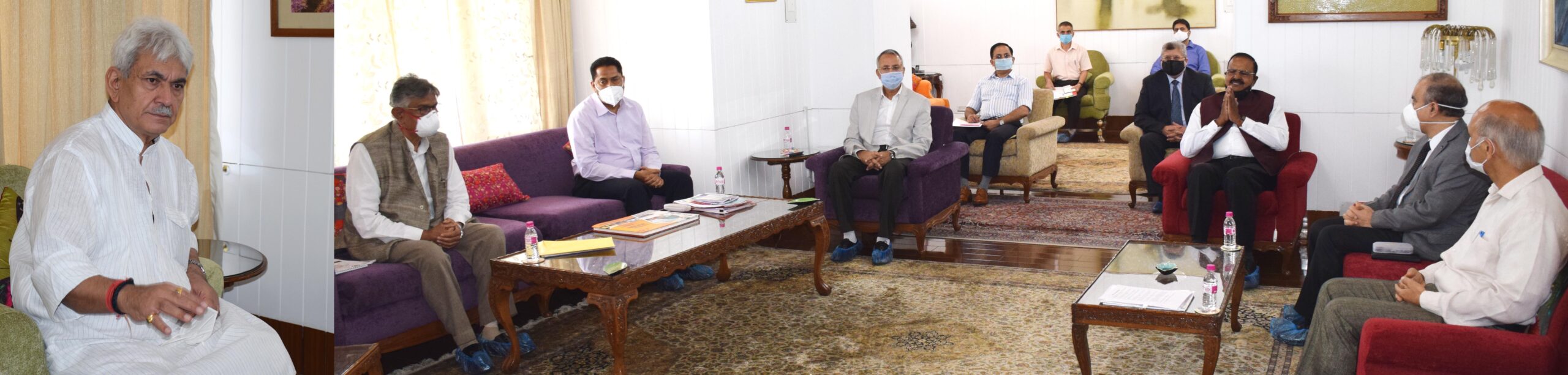 Sh. Kewal Kumar Sharma, Advisor to the Lieutenant Governor; Sh. Bipul Pathak, Principal Secretary to Lieutenant Governor; Prof. Manoj Kumar Dhar; Prof. Talat Ahmad; Dr. Nazeer Ahmed; Prof. (Dr.) Ravindra Kumar Sinha; Prof. Javed Musarrat and Prof. Mushtaq A Siddiqi – Vice-Chancellors of University of Jammu; University of Kashmir; Cluster University, Srinagar; Sher-e-Kashmir University of Agricultural Sciences and Technology (SKUAST) Kashmir, Shri Mata Vaishno Devi University (SMVDU), Baba Ghulam Shah Badshah University, Islamic University of Science & Technology (IUST), respectively, besides Sh. Talat Parvez Rohella, Secretary, Higher Education and other senior officers attended the meeting.